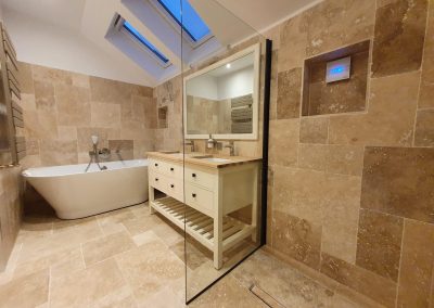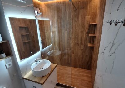 Nous prenons en charge l’ensemble des finitions et aménagements intérieurs pour transformer vos espaces avec soin et précision. De la salle de bain clé en main au choix des revêtements (parquet, carrelage, résine, etc.), nous réalisons chaque détail dans le respect de vos envies et de votre budget.